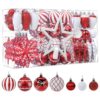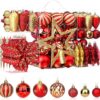 128pcs Red and Gold Shatterproof Plastic Baubles, Swans, Stars, Canes Christmas Balls Ornaments Set