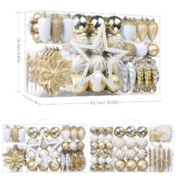 Be the first to review “106PCS Gold &White Christmas Balls Ornaments Set with Hanging Hooks” Cancel reply
