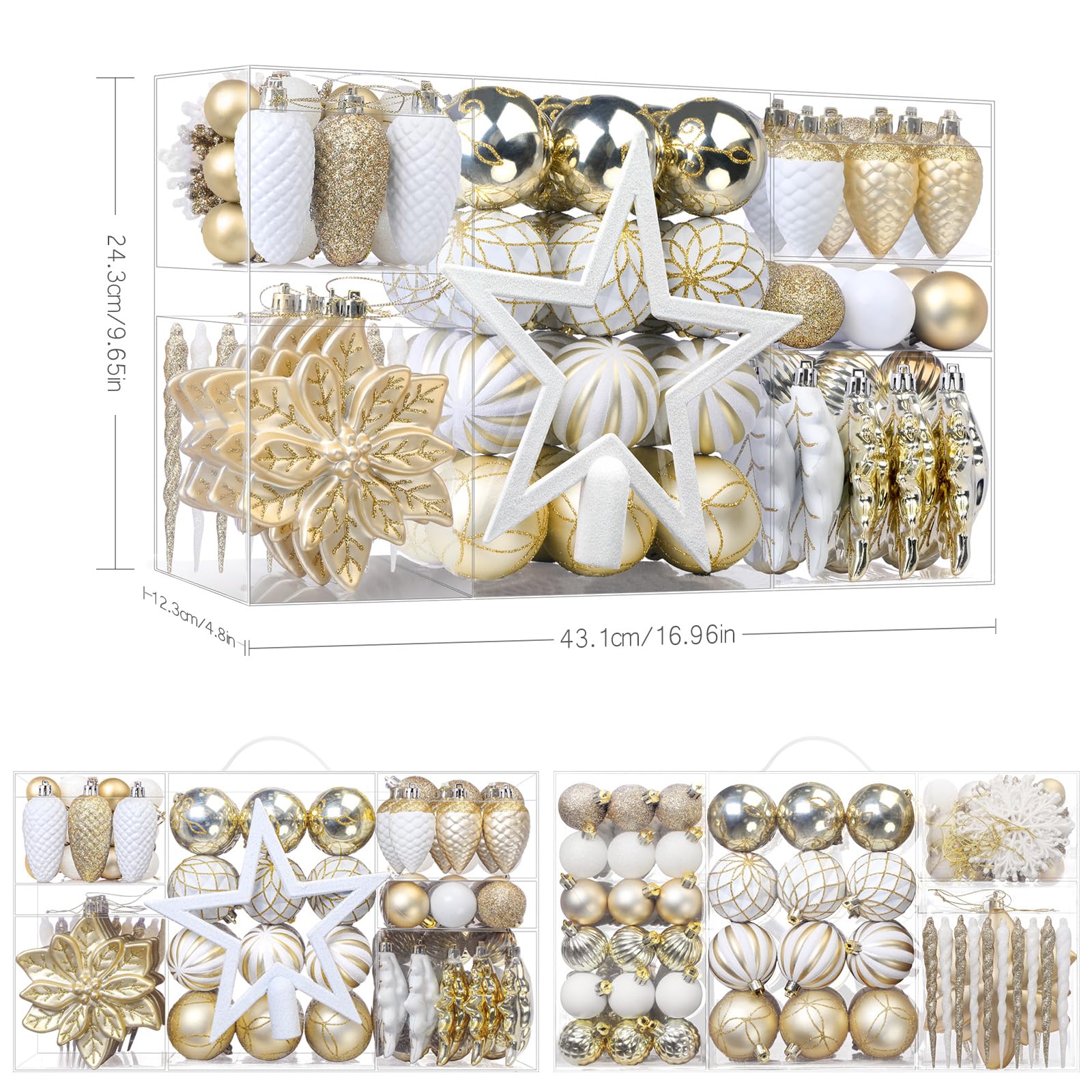 106PCS Gold &White Christmas Balls Ornaments Set with Hanging Hooks