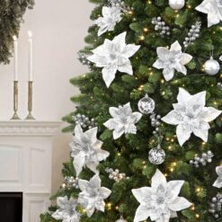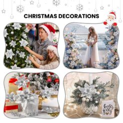 Be the first to review “24 Pcs 6″&9″ Silver Large Poinsettia Artificial Christmas Flowers Decorations for Christmas Tree with Clips&Sticks” Cancel reply
