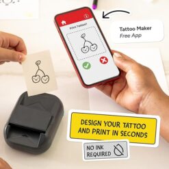 - PRINT YOUR OWN BODY ART: This thermal tattoo printer uses ink-free technology to print directly onto special tattoo paper—no cartridges, no mess! Just print, color, and apply to skin with ease. Tattoos are temporary, and removal instructions are included.