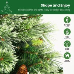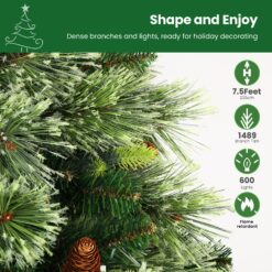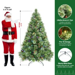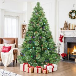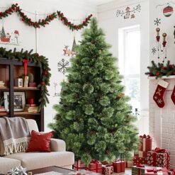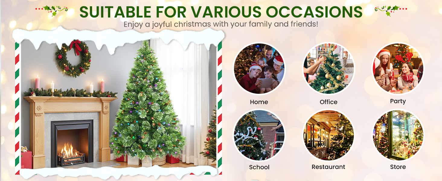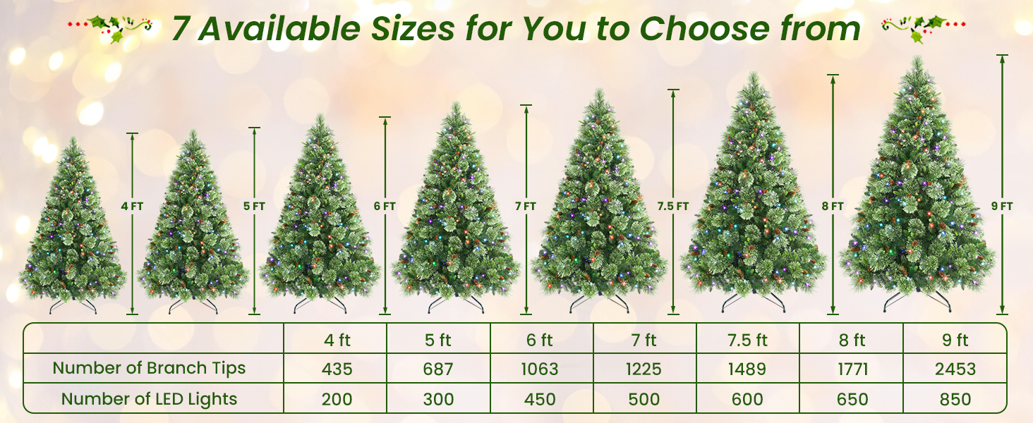 - 🎄【Multiple Size Options】2025 upgraded version, available in 4ft, 5ft, 6ft, 7ft, 7.5ft, 8ft, and 9ft. Each pre-lit Christmas tree is designed with a lush appearance and comes with pine cone decorations. You can further customize it with garlands, ornaments, and more to decorate your home, office, or holiday party.