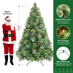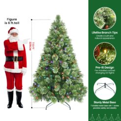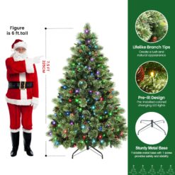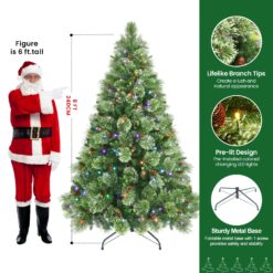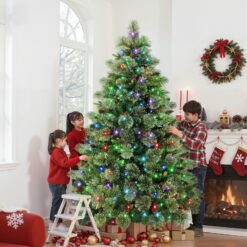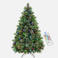 - 🎄【Warm White & RGB Lights】The upgraded pre-lit artificial Christmas trees feature both RGB multi-color lights and newly added warm white lights this year. No need to add extra lights — just plug in and enjoy the glow.